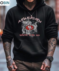 The San Francisco 49ers Wear By Erin Andrews Boyfriend Shirt is the perfect addition to any football fan's wardrobe. This shirt, designed by Erin Andrews, embodies the spirit of the San Francisco 49ers with its bold team colors and logo. The relaxed, boyfriend-fit of the shirt makes it comfortable to wear while cheering on the 49ers during game day or any day. Made from soft and durable fabric, this shirt is a must-have for any fan looking to show off their team pride in style.
