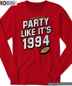 The San Francisco football party like it’s 1994 shirt exudes a nostalgic charm that takes fans back to the golden era of the team. The shirt captures the essence of the excitement and energy of 1994, a time when the team was at the height of its success. With a classic design and vintage vibes, this shirt is a must-have for any die-hard San Francisco football fan looking to showcase their team pride and celebrate the glory days of the past.