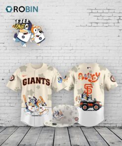 Batter up, Bluey fans! Get ready to cheer on the San Francisco Giants with this adorable Bluey and Bingo baseball jersey! Perfect for game day or everyday adventures with your favorite pups. Show your love for baseball and Bluey in one super cute shirt!