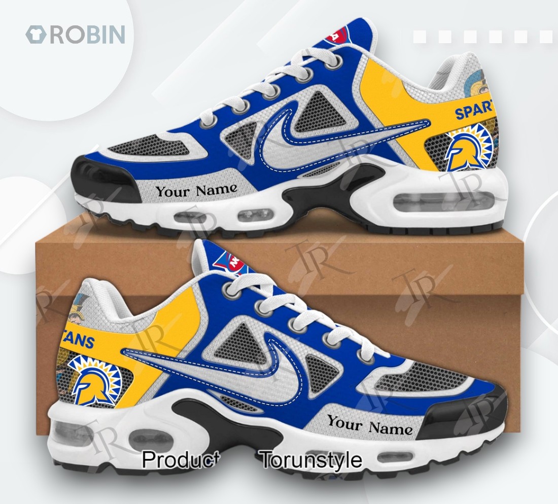 Step into Spartan style! Rock the future with these limited-edition kicks. Personalize them with your name and experience ultimate comfort with air cushion technology. Show your SJSU pride! Pre-order yours now before they're gone! 👟 💙💛