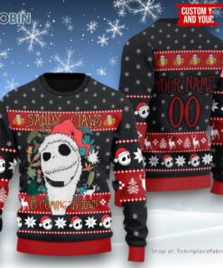 Sandy Claws Is Coming To Town Custom Ugly Sweater and Sweatshirt details