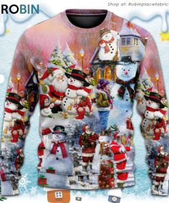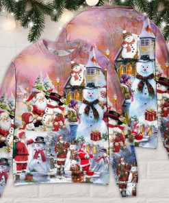 Santa And Snowman Christmas Snow Village Ugly Christmas Sweater