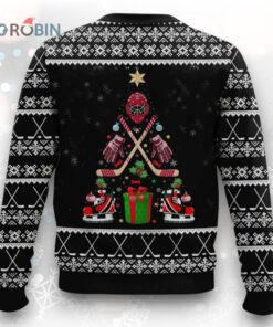 Ho-ho-hold on to your hats! 🎅🏑 This festive sweater is a guaranteed conversation starter at your next holiday party. Get ready to spread some cheer (and maybe a few laughs) with this unique and hilarious design. Perfect for hockey fans and Christmas enthusiasts alike!