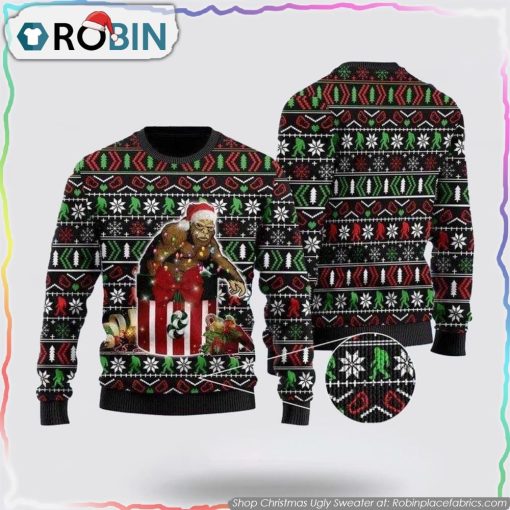 Santa Squatch Bigfoot Christmas Sweater Festive Gift Box Design Gifts For Bigfoot Lovers details