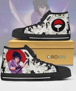 Sasuke Uchiha Naruto Anime Mixed Manga Style Canvas High Top Shoes