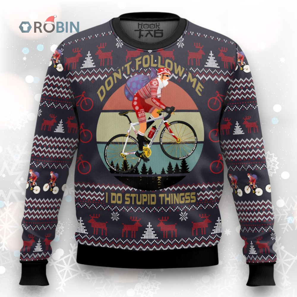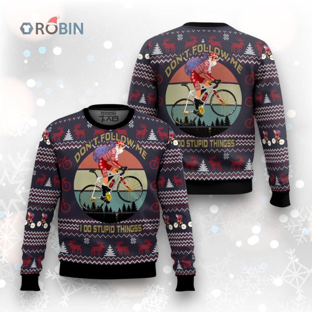 This Christmas Sweater is perfect for the rebellious holiday spirit! Picture this: a devilish Santa shredding down a mountain on a bike. It's the ultimate blend of festive cheer and edgy fun. Grab this unique Christmas sweater and stand out at all your holiday gatherings!
