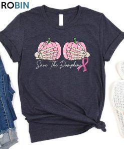 Save The Pumpkins Breast Cancer Shirt, Pumpkin Trendy Sweatshirt Crewneck details