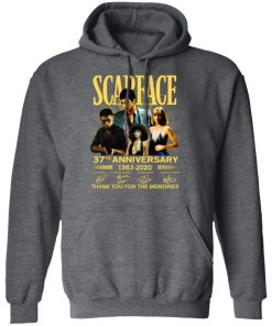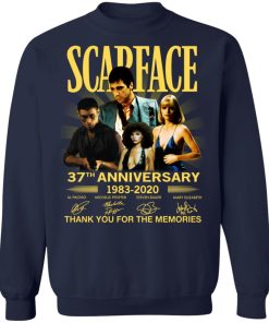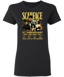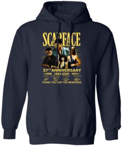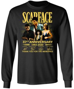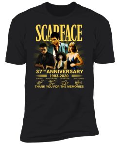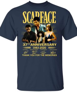 Scarface 37th Anniversary 1983 2020 Thank You For The Memories Signatures shirt. Available in t shirt, long sleeve, tank top, hoodie, sweatshirt and multiple color. If you want in another color please contact us. Quality control before delivery. Print: Digital printing, colors won’t fade or peel. The design is printed with new age printing technology. It is printed with a water – soluble and eco – friendly ink. Treat yourself, or make this shirt the perfect gift on birthdays, anniversaries, holidays, or give a gift to friend, yourself, or family, or for no reason at all.