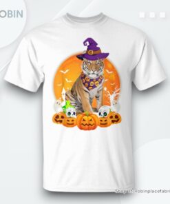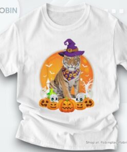 Unleash your Halloween spirit this season with a shirt that embodies the ultimate spooky celebration, conjuring a bewitching concoction of thrilling elements. Envision a dynamic fusion of eerie pumpkin skulls and roaming ghosts, enhanced by the haunting intrigue of witchcraft and the fierce presence of a Bengal tiger under the moon's glow. This unique shirt is perfect for making a bold statement at any Halloween gathering or showing your love for all things spine-chilling. Feel the excitement of Halloween pulsing through every thread, inviting you to embrace the festivities with this must-have piece for the season. Whether you're attending a haunted house or simply enjoying the autumn breeze, let this shirt be your spirited companion.