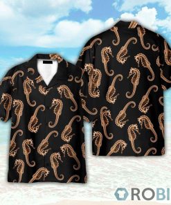 Seahorse X Ray In Black Hawaiian Shirt features