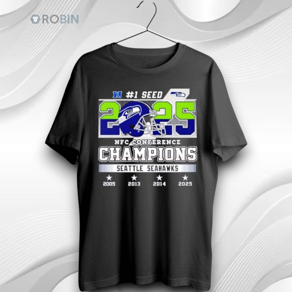 2005. 2013. 2014. 2025. History creates expectations, and this year, the Seahawks delivered. This shirt celebrates the 2025 NFC Championship run and the dominance required to secure the #1 Seed. It isn't just a shirt; it’s a timeline of greatness.