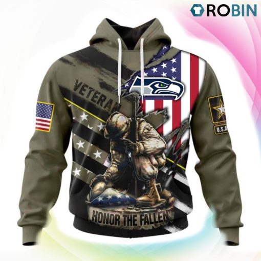 Seattle seahawks NFL Honor Veterans And Their Families 3D Hoodie, Seattle Seahawks Fan Shirt for Sale features