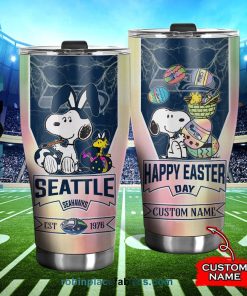 Seattle Seahawks NFL Snoopy Happy Easter Day Custom Name Tumblers Cup