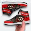 Embrace the dark side with these custom Star Wars-themed Jordan 1 High sneakers! Inspired by the Separatist Alliance, these kicks feature intricate details and a unique color scheme that any Star Wars fan will love. Step into a galaxy far, far away with every stride. Get yours now!