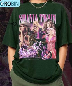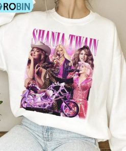 This Shania Twain Queen Of Me Tour Shirt is a must-have for any fan of her music! The shirt features a modern graphic image of Shania in a pink cowboy hat. The bold colors represent her edgy and independent spirit. The shirt is made of soft and breathable cotton and polyester fabric blend for a comfortable fit. The hoodie and sweatshirt feature a full-length zipper closure on the front for a stylish look. Great for wearing to a concert, or to show off your love for Shania's music, this shirt is perfect for any fan!