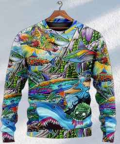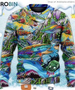 Shark Hippie Colorful Art Peace Christmas Ugly Sweater, Sweatshirt details