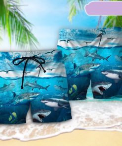 Shark Undersea Darkness Art Beach Short, Gift for Holiday Summer