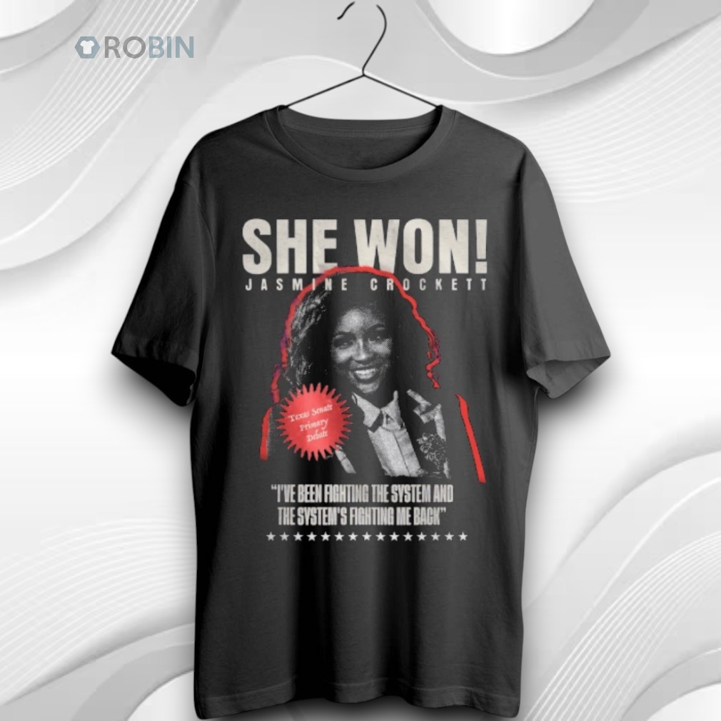 The message is clear: Resilience wins. This shirt celebrates Jasmine Crockett’s undeniable victory with a design that speaks to the heart of her political journey. The graphic features a striking portrait of Crockett, crowned by the bold declaration: "SHE WON!"