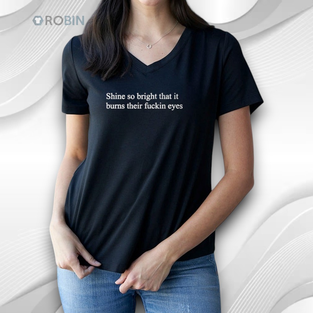 The bold quote “Shine so bright that it burns their fuckin’ eyes” is all about confidence, attitude, and not caring what others think. It’s strong, honest, and meant to stand out.