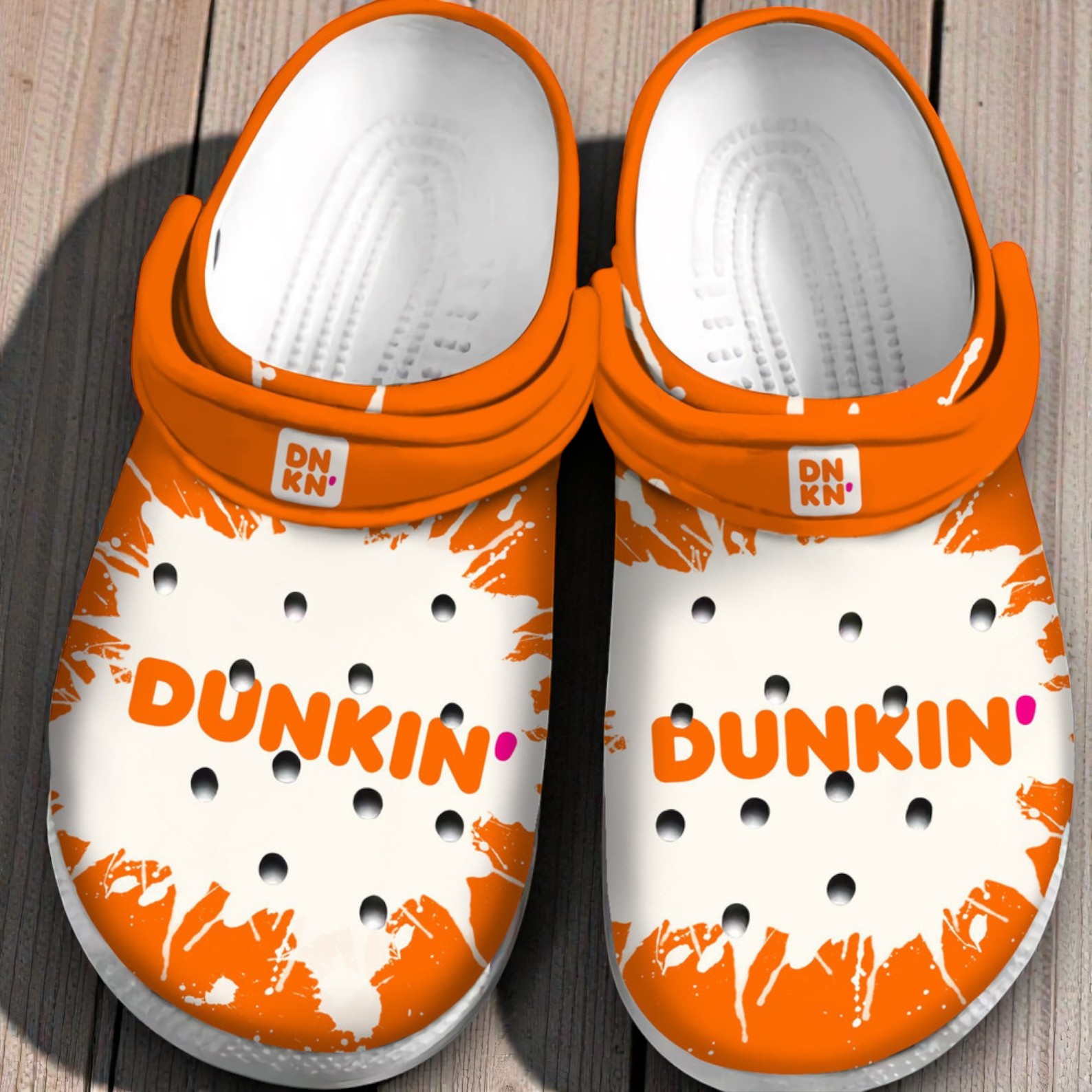 There’s something about wearing a piece of what you love that just clicks—like a quiet nod to the things that brighten your day. If Dunkin’s orange hues are part of your daily rhythm, these clogs slide right into that vibe without missing a beat. The design blends a crisp white, perforated base with bold orange straps that feel lively but never over the top. Splatter accents add a playful edge, like someone caught mid-splash, and the iconic Dunkin logo pops in just the right spot to remind you where the inspiration comes from. For anyone who’s collected sneakers or enjoys a splash of sporty boldness in their casual wear, these Dunkin orange clogs fit naturally into the mix. They’re comfortable enough to wear all day, whether you’re dashing between errands or meeting friends for a laid-back get-together. Fans of the brand, or those who just appreciate a fun, energetic twist in their footwear, would find these especially appealing. They’re also quietly thoughtful when it comes to gifts. A Dunkin lover or sneaker enthusiast might not expect clogs, but the playful, sporty feel makes for something memorable—something to wear while hanging out, heading to theme parties, or just making the everyday a little more fun. It’s a casual statement, one that starts with “yeah, this is my thing.”