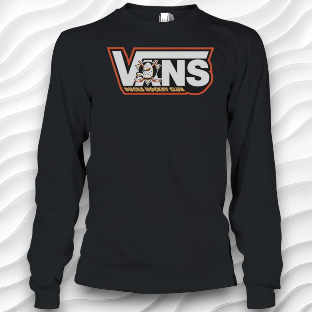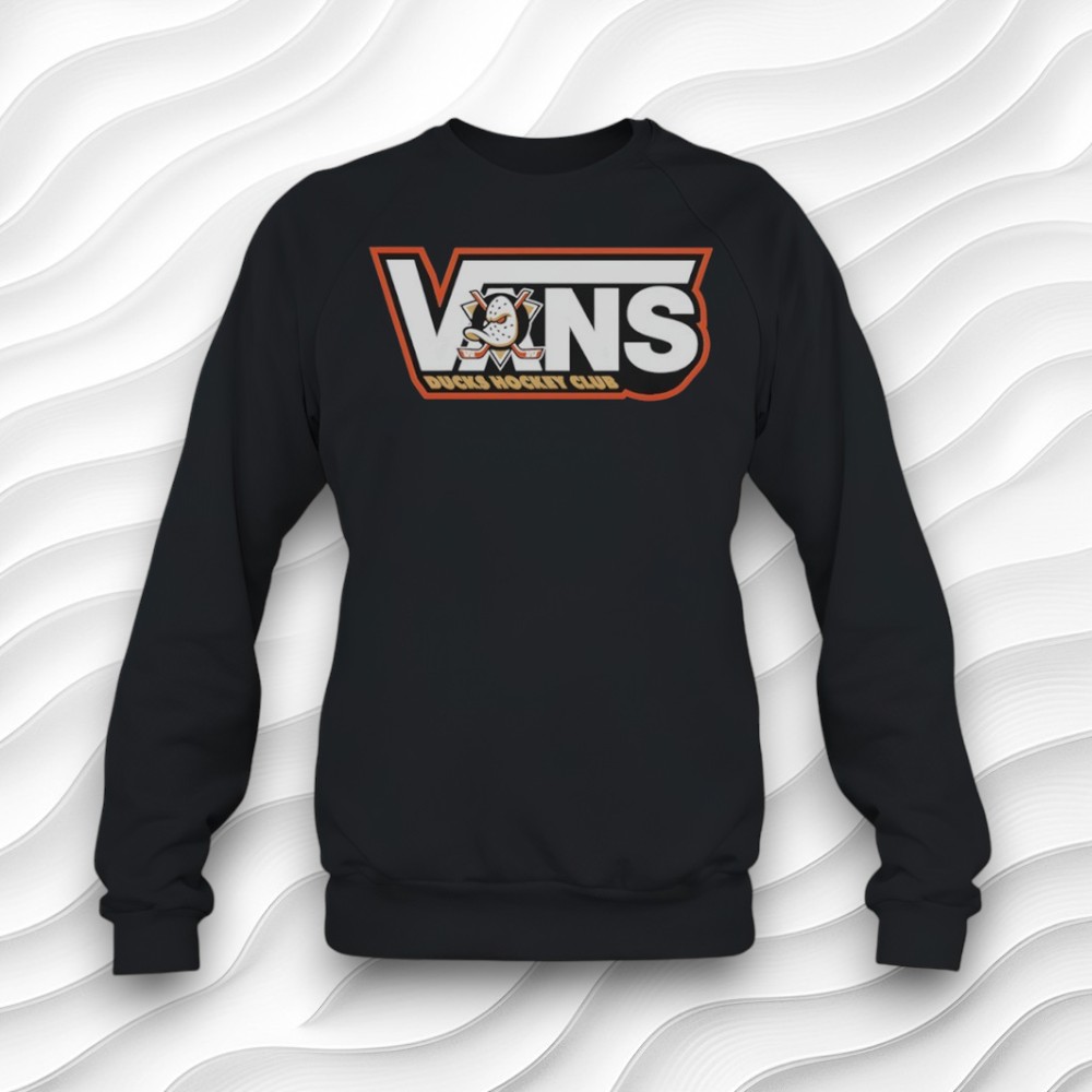 There’s something instantly captivating about a shirt that balances boldness with a touch of playful nostalgia, and that’s exactly what this one delivers. On a dark gray canvas, the centerpiece demands attention—a fierce duck mascot locked in the spirit of hockey, its confident stance ready for the rink. The logo pops with a vibrant mix of orange, white, and black, creating sharp contrasts that pull the eye toward every detail, from the duck’s mischievous glare to the crisp outlines of the blocky lettering above it. This isn’t just any design—it channels a vintage athletic vibe with its strong sans-serif typography, thick and outlined as if shouting out team pride with a retro edge. The letters, formed into what looks like “VONS” or a related branding, frame the mascot perfectly, echoing the energy of an old-school hockey club while still feeling fresh. The sport-inspired theme is clear without being over the top, making it a standout piece for fans who want to wear their enthusiasm without shouting it too loudly. There’s a personality tied to this look that goes beyond fandom. It suits someone who enjoys casual comfort but also wants to make a statement, whether they’re cheering from the stands, meeting friends, or just running errands on a crisp day. The duck motif adds a playful twist to the sporty aesthetic, appealing especially to those who have a soft spot for quirky mascots or the culture around hockey clubs. As a duck hockey club shirt, it’s the kind of gear that slips easily into everyday wear while still hinting at something lively and spirited. Perfect as a gift for anyone whose interests skate between sports, ducks, or just a good-looking, bold pullover shirt that fits a variety of casual moments without missing a beat.