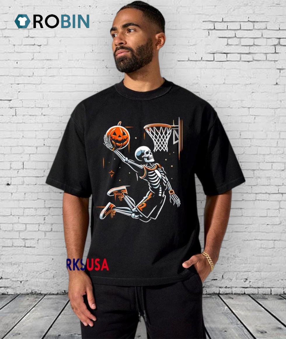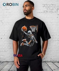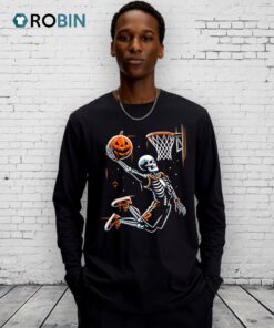Skeleton Basketball Player Men Boys Scary For Halloween Shirt