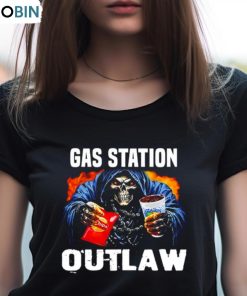 The Skeleton Gas Station Outlaw Shirt is a unique and edgy piece of clothing that is sure to make a statement. With its bold design featuring a skeleton wearing a cowboy hat and standing in front of a gas station, this shirt exudes a rebellious and outlaw vibe. The color scheme of black and white adds to its cool and badass look. Made from high-quality materials, it offers both comfort and style. Wear this shirt to show off your wild side and create a fashion statement like no other.