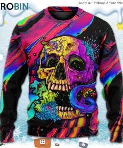 Skull And moth Night Butterfly Neon Style Christmas Ugly Sweater, Sweatshirt