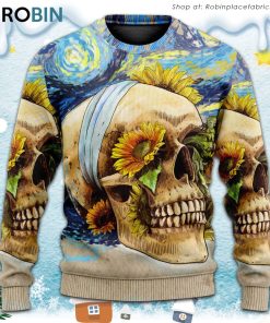 Skull And Sunflower Vintage Amazing Starry Night Ugly Christmas Sweater details