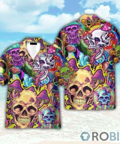 Skull Colorful Printed Casual Abstract Hippie Style Hawaiian Shirt features