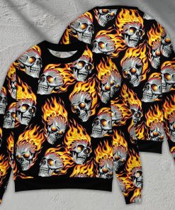 Skull Cool On Fire Christmas Ugly Sweater, Sweatshirt details