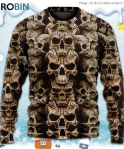 Celebrate the holiday season with this unique and edgy Christmas sweater. Featuring an intricate design, this 3D printed sweater showcases a mysterious and captivating image. The dark and mysterious theme of the sweater, with its skull motif, adds a touch of intrigue and uniqueness. The attention to detail in the design highlights the skilled craftsmanship involved in the creation of this sweater. Perfect for those looking for an alternative and unconventional holiday attire, this sweater is sure to turn heads and make a statement. Show off your individuality and embrace the darkness within with this one-of-a-kind Christmas sweater.