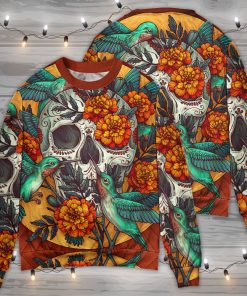 Skull Floral Skull Hummingbird Christmas Ugly Sweater, Sweatshirt details