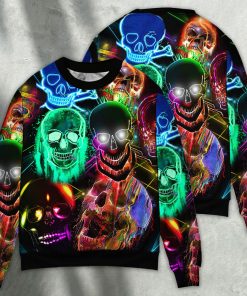 Skull Glowing Colorful Style Sweater Christmas Ugly Sweater, Sweatshirt details