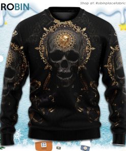 Skull Golden Skull True King Stay True Till Death Christmas Ugly Sweater, Sweatshirt details
