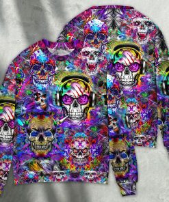 Skull Hippie Colorful Art Style Sweater Ugly Christmas Sweater