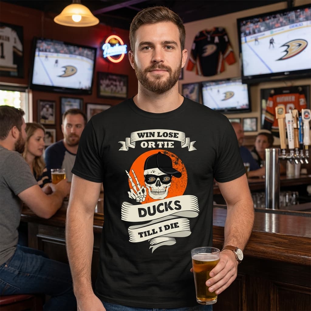 With its striking blend of edgy retro Americana and playful rebellion, this unisex shirt makes a statement without saying too much. The design centers on a hand-drawn skull wearing a cap, framed by a vibrant orange circle that catches the eye. Banners arch across the graphic, featuring bold, distressed uppercase lettering that echoes the spirit of vintage sports slogans. It’s a look that nods to Halloween culture but stays firmly grounded in a casual, everyday aesthetic. This shirt speaks to those who like their fandoms served with a side of attitude—whether they’re heading out for a game night, a weekend party, or just a relaxed stroll around town. There’s a fun, rebellious energy woven through the imagery and typography that suggests a wearer unafraid to show a little personality, whether among friends or fellow Ducks enthusiasts. Layer it under a denim jacket with jeans for a laid-back vibe or pair with sneakers for a night out. It’s just as at home on someone who collects graphic tees as part of their daily rotation as it is on someone looking to add a bit of playful grit to casual get-togethers. The Skull Say Hi Anaheim Ducks Unisex Shirt captures the casual spirit of those moments when style meets self-expression without effort.