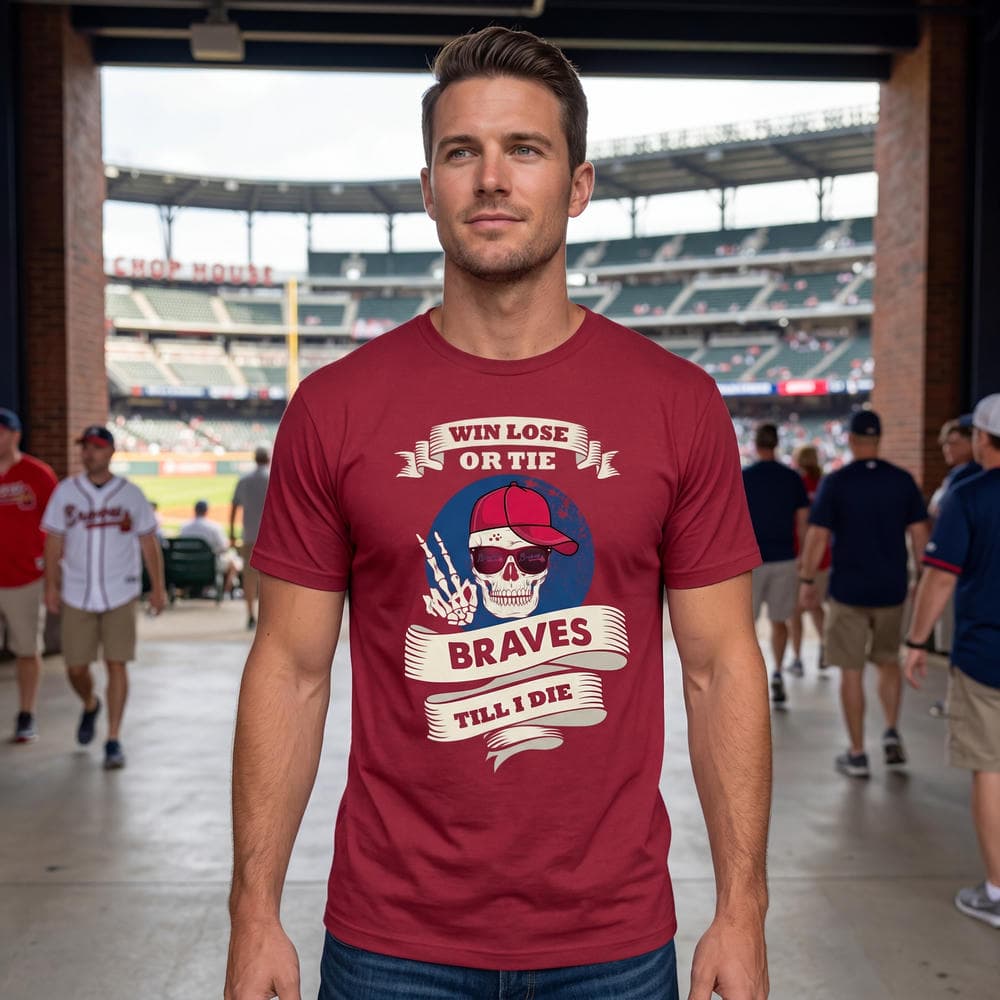 There’s something magnetic about a design that blends grit with a playful edge, especially when it’s draped in the colors and spirit of baseball’s most passionate fans. This shirt captures that energy perfectly, using a bold skull graphic that isn’t just about toughness but a kind of rebellious loyalty. The skull sports a classic Braves cap, instantly striking a chord with anyone who breathes baseball and thrives on that competitive buzz. Banner ribbons twist around, framing the circular background, while the raised skeletal hand adds a touch of attitude that feels more spirited rally than intimidation. The typography locks everything into place with an athletic serif style that echoes the vintage vibes of ballparks and weekend face-offs. It’s a shirt with personality, grabbing attention without shouting – the kind of subtle roar that thrives in tailgate crowds or casual hangouts where the game is on, and the camaraderie is as important as the score. Pair this skull Braves shirt with worn-in jeans and a favorite pair of sneakers for an easy, confident look. Layer it with a zip-up hoodie or a denim jacket when the night gets cooler, and you’ve got a versatile outfit that moves effortlessly between the stadium parking lot and whatever comes after. It’s the perfect pick for those who wear their fandom with pride but don’t take themselves too seriously. Whether you’re heading to game day or just want to keep a little bit of that ballpark spirit close, this shirt speaks to the bold fan who values style with a side of attitude. Ideal for Braves supporters, sports enthusiasts, or anyone who loves gear that feels authentic and full of energy — it’s more than just apparel; it’s part of the lifestyle.
