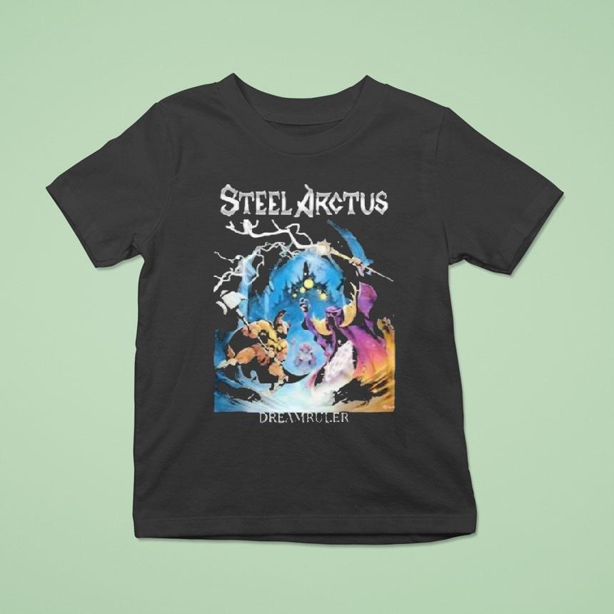 There’s something striking about the way lightning forks through the deep blue and purple sky on this shirt. The scene feels alive, charged with energy, as knights clash against monstrous creatures, caught in a fierce battle that seems to pulse with everything legendary metal fans love. The steel arctus dreamruler isn’t just a name here—it’s a whole saga packed into the artwork, an emblem of strength and defiance. Look closely and you’ll notice the heavy, jagged lettering that feels like it was ripped right off a vintage metal album cover. It’s distressed, raw, and perfectly at home alongside the swirling chaos of warriors and beasts locked in combat. The neon accents catch the eye and refuse to let go. This isn’t subtle; it’s proud, loud, and unapologetically epic. Craftsmanship shines in the way the layout balances detail with impact. Every inch tells a story, from the crackling electric sky crowning the knights to the sinewy tension in the creatures below. The colors blend and contrast in a way that feels both modern and timeless, a nod to the fantasy metal aesthetic but with fresh energy. For those who collect graphic tees or just want to wear a piece that speaks to their weekend mood—whether that’s headbanging at concerts, diving into a gaming session, or gearing up for a cosplay event—this shirt delivers. It’s made for folks who appreciate art that’s as bold as their interests, a fitting tribute to the steel arctus dreamruler mythos.