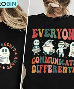 Slp Teacher Shirt, Everyone Communicates Differently Unisex Tee Hoodie – Sweatshirt details