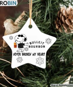 Transform your holiday festivities with a charming ornament that blends nostalgia, fun, and a touch of sophisticated whimsy. Featuring the beloved character Snoopy alongside the classic appeal of Bulleit Bourbon, this captivating Christmas decoration is not just an ornament but a celebration of heartwarming memories and joyous moments. Perfect for adding a unique twist to your tree, it's a delightful gift for loved ones or a special treat for your own festive collection. Embrace the spirit of the season with an ornament that truly stands out.