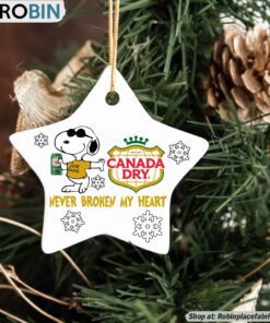Step into the holiday spirit with an enchanting piece that combines nostalgia, charm, and festive cheer. This delightful Christmas ornament features the beloved cartoon character Snoopy, paired with the iconic Canada Dry Ginger Ale. It's more than just a decoration; it's a heartwarming tribute to timeless memories and classic holiday traditions. Perfect for adorning your tree or gifting to loved ones, this ornament is sure to become a treasured keepsake that brings joy year after year.