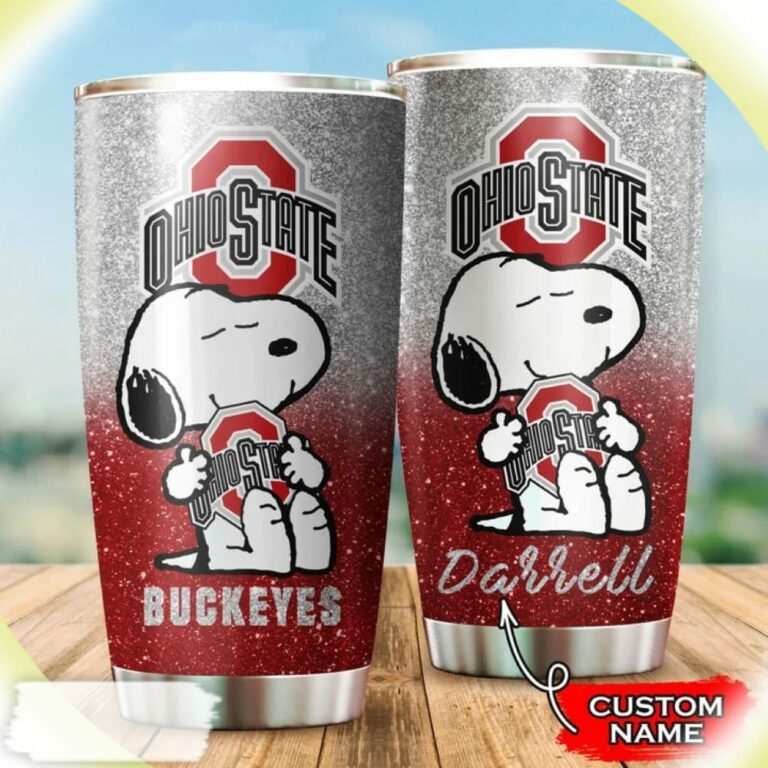 Show Your Ohio State Buckeyes Pride with this Personalized Snoopy Hug Tumbler!