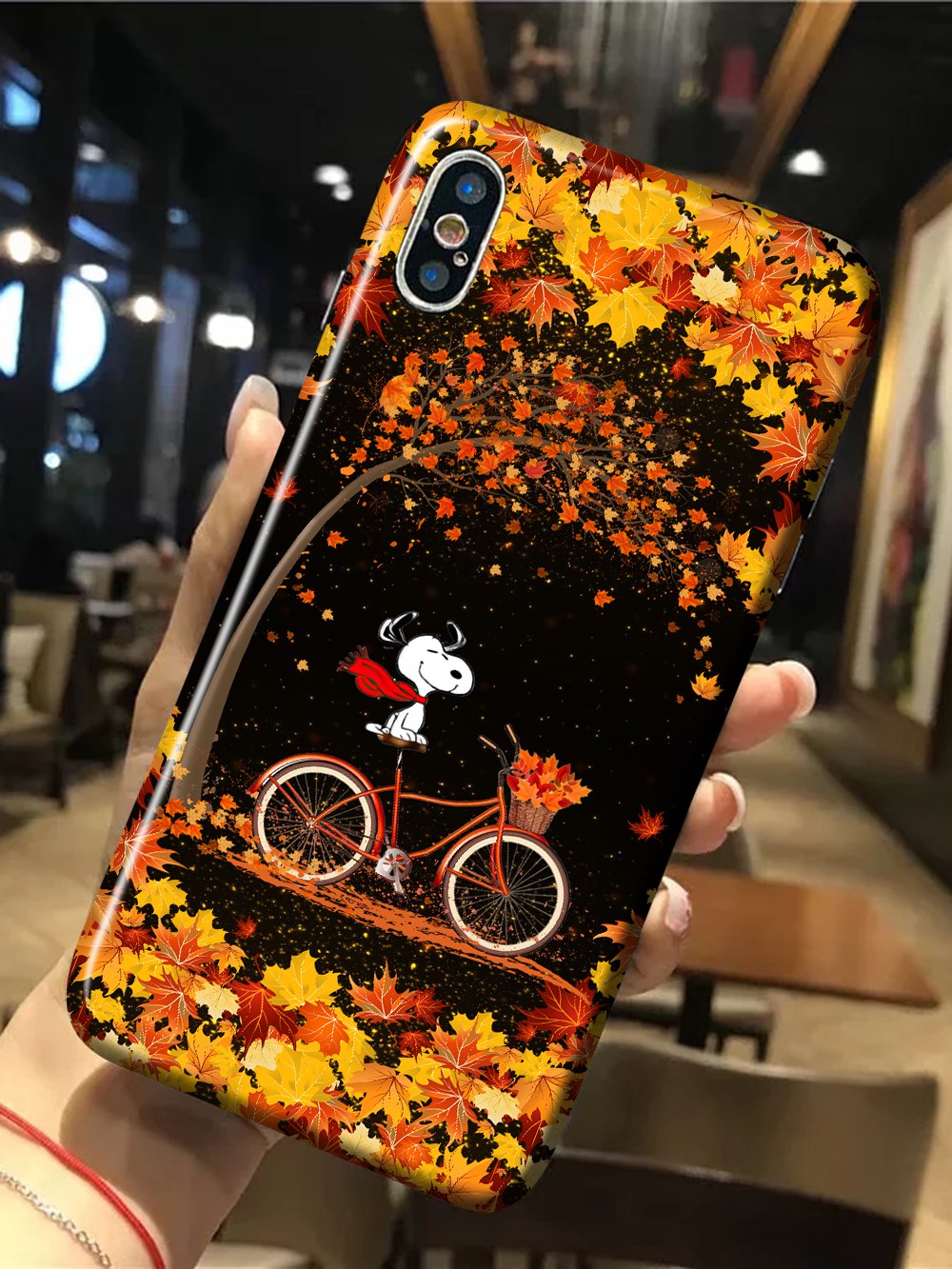 Snoopy Riding Bicycle Autumn Glass Luminous Phone Case
