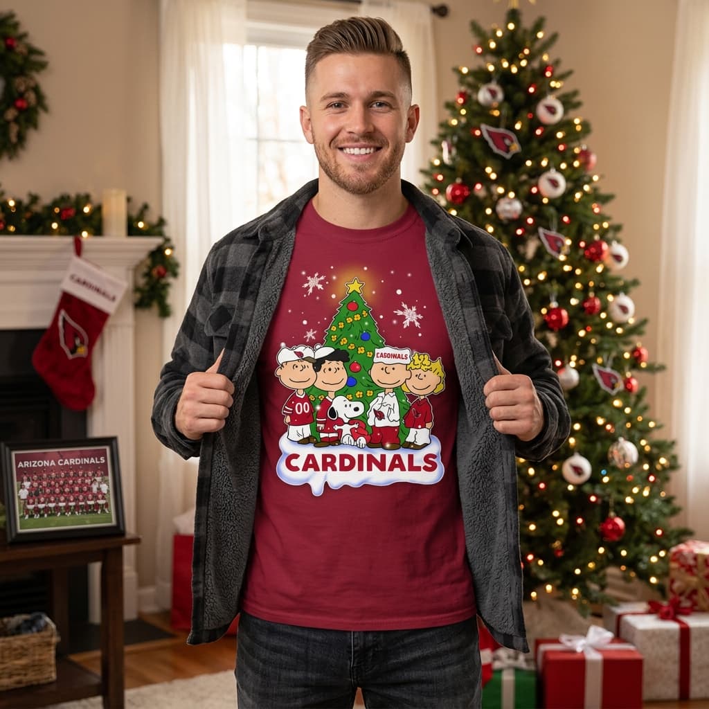 There’s something about seeing Snoopy decked out with a Cardinals helmet that makes this sweater feel instantly familiar, like a cozy memory you haven’t made yet. The design pops right away—the bold red backdrop sets the tone, bright and unmistakably spirited. Snowflakes drift around Snoopy as he lounges near a decorated Christmas tree, while the Peanuts characters mingle playfully, all underlined by the unmistakable uppercase Cardinals wordmark stretching across the bottom in strong contrast. It’s a blend of nostalgia and sporty pride that feels both cheerful and heartfelt. This sweater really speaks to fans who grew up loving those classic Peanuts cartoons but also bleed Cardinals red. It’s not just about showing team spirit; it’s about sharing that warmth and fun during the holiday season. Whether it’s worn at a casual game day gathering or during a quiet family Christmas morning, this sweater fits comfortably into moments that matter. It makes a thoughtful gift for anyone caught in that sweet spot—someone who can appreciate the whimsy of Peanuts and the passion for the Cardinals simultaneously. Perfect to pull out when the temperature drops and the holiday vibes settle in, it offers a playful yet cozy reminder of teamwork and tradition. The Arizona Cardinals Christmas sweater carries a subtle charm that’s more than just festive wear—it’s a piece that encourages connection and nostalgia.