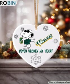 Get ready to deck the halls with a festive touch of nostalgia and whimsy! Our charming ornament celebrates the heartwarming charm of Snoopy paired with the iconic Vernors Ginger Ale, creating a unique holiday keepsake that will bring joy to any Christmas tree. Whether you're a Snoopy enthusiast, a Vernors fan, or simply someone who loves unique holiday decor, this ornament is sure to captivate your heart and become a cherished part of your holiday traditions. Add a dash of vintage flair and playful spirit to your festivities this year!