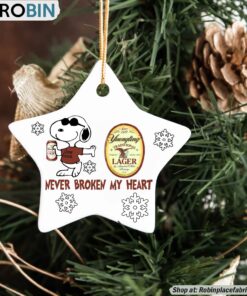 Are you searching for the perfect holiday decoration that adds a merry twist to your Christmas tree? Look no further! This delightful ornament combines holiday cheer with a touch of nostalgia and fun. Featuring Snoopy in festive attire along with a nod to your favorite traditional lager, it's more than just an ornament—it's a statement of good times and cherished memories. Make your Christmas tree sparkle with this unique, heartwarming addition you won't find anywhere else!