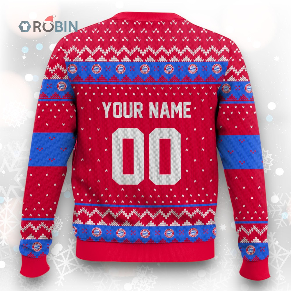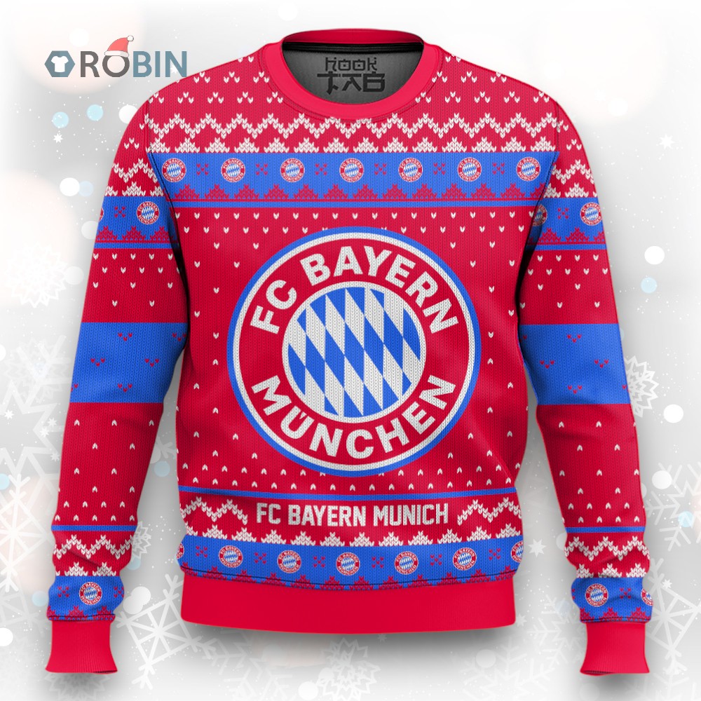 Get festive with the ultimate FC Bayern Munich Christmas sweater! Show your team spirit this holiday season with this delightfully quirky knit. Perfect for game day or a cozy Christmas gathering. Grab yours now and spread some Bavarian cheer!