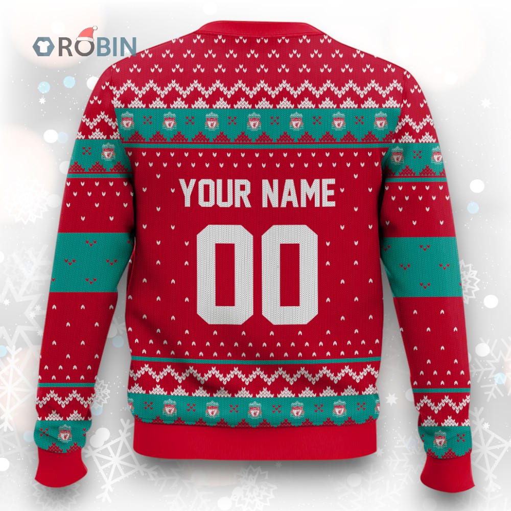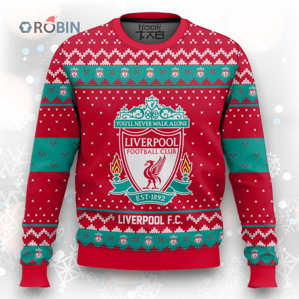 Show your support for the Reds this holiday season! Rock this festive sweater featuring the iconic Liverpool F.C. crest. The perfect way to celebrate Christmas while cheering on your favorite team. Get yours now and spread the holiday cheer! You'll Never Walk Alone!