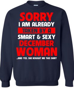 Sorry I am already taken by a smart and sexy december woman t shirt, hoodie, tank, long sleeve available